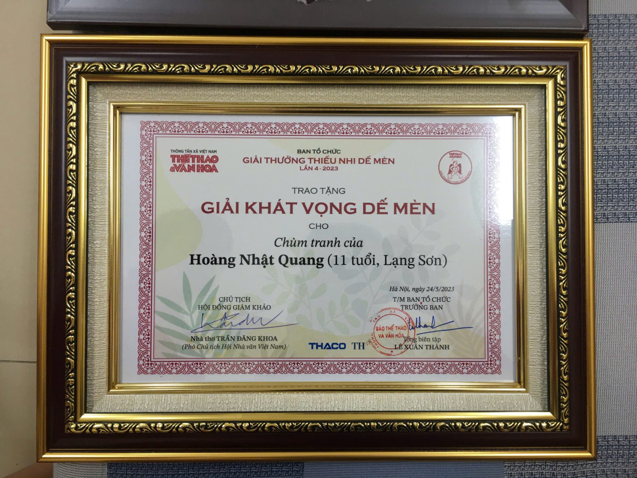 - 2023: Giải “ Khát vọng dế mèn” – Giải thưởng thiếu nhi Dế mèn