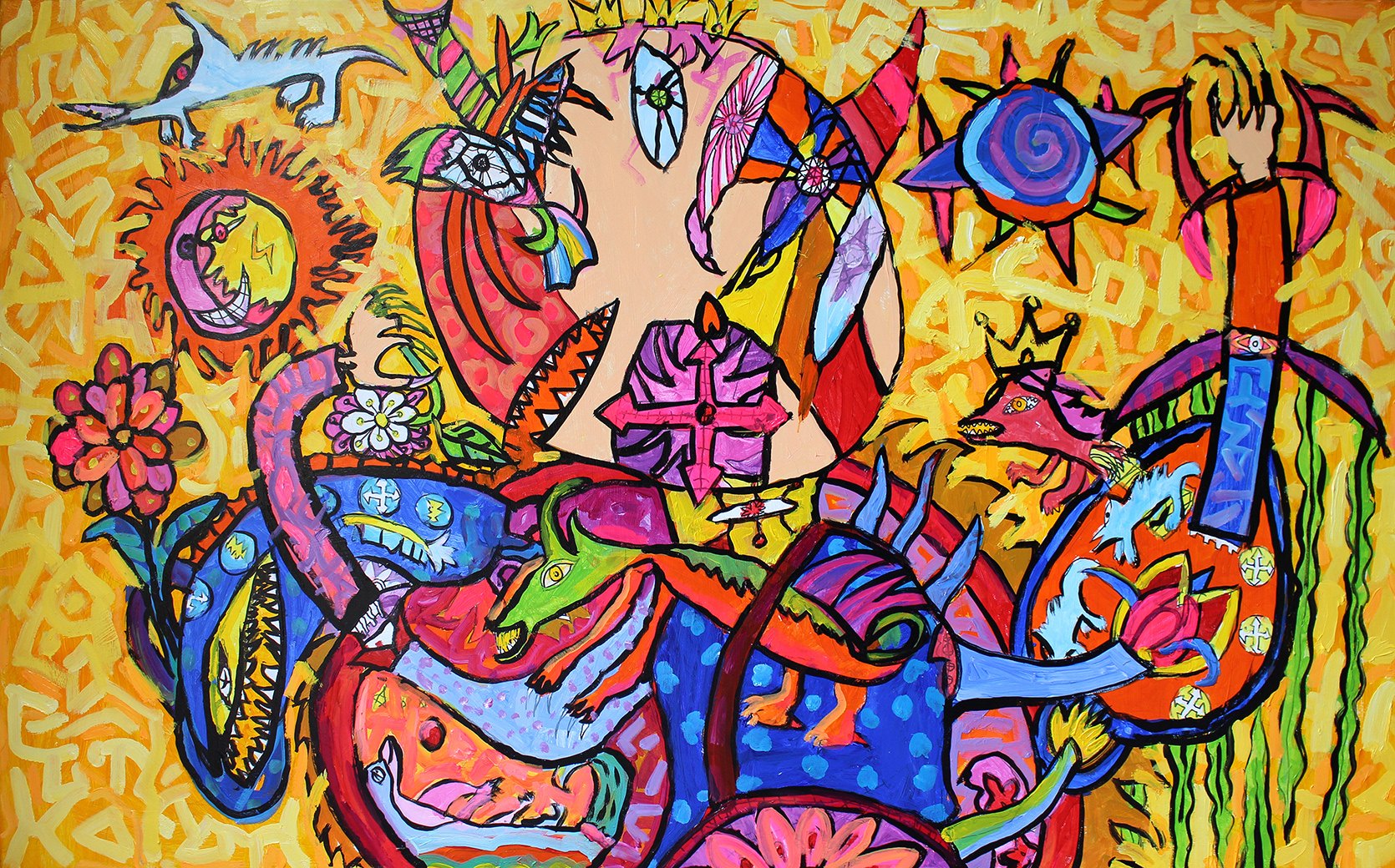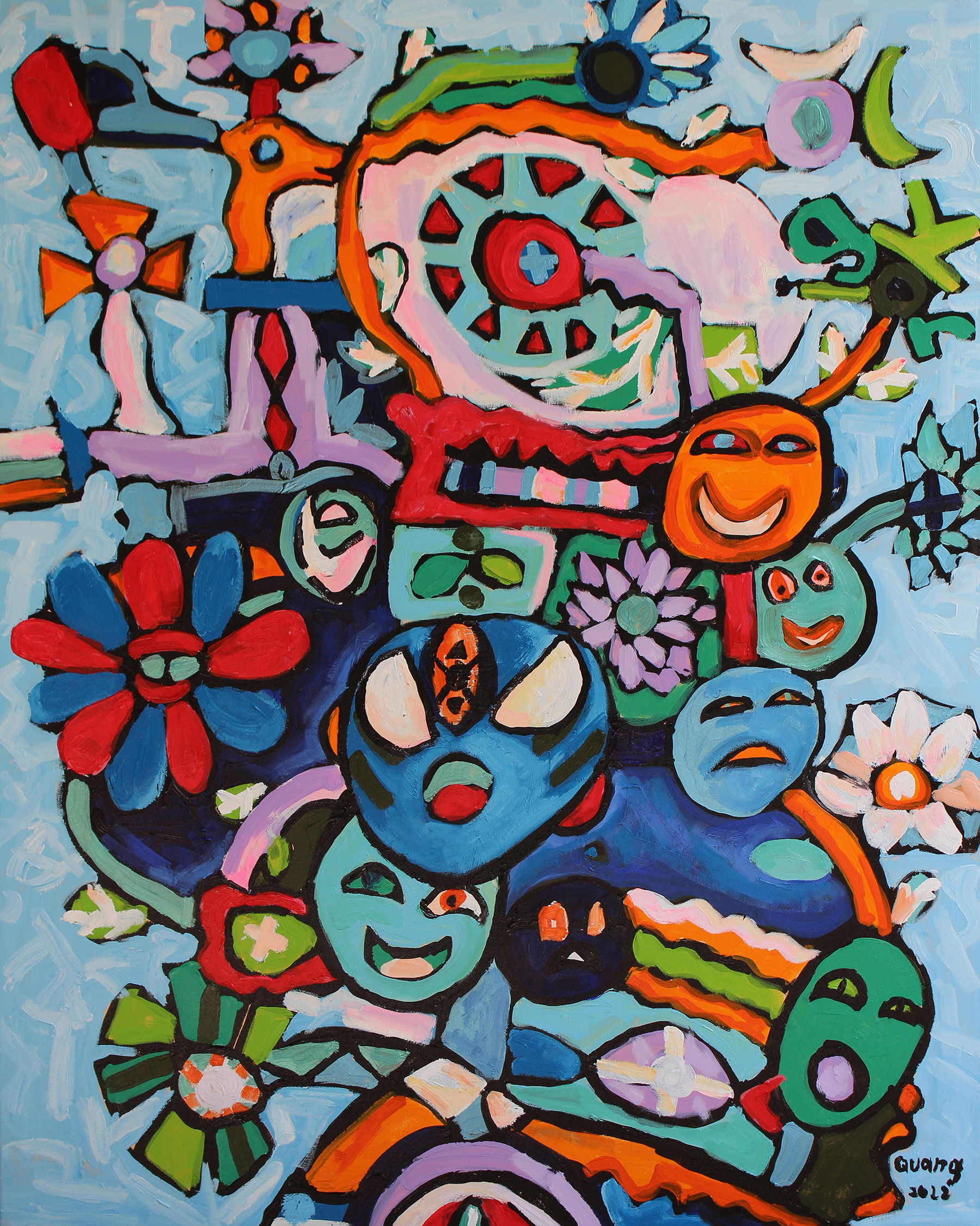 “Tranh của Hoàng Nhật Quang là một không gian lạ. Nó vừa trừu tượng, vừa siêu thực. Khó lý giải lắm! Và bản thân những ngôn ngữ biểu hiện của tranh Hoàng Nhật Quang gần như không có sự chuẩn bị nào, hoàn toàn sử dụng  cảm xúc, một cảm nhận tự nhiên để có được không gian nghệ thuật riêng mà đời thường hay người thường không nhìn thấy.Trong khi đó, tranh của những bạn cùng lứa tuổi thường rất cụ thể, thể hiện những va đập của xã hội đương đại. Người ta tò mò tại sao Quang lại “đọc vị” được “Những linh hồn ẩn giấu” (Tên triển lãm)? Giải thích điều này, tôi nghĩ rằng, có lẽ chính một phần văn hóa vùng cao đã giúp Quang được hưởng một đời sống tâm linh khó lý giải. Nơi Quang sống với những đền phủ thượng ngàn, những tranh thờ miền núi đã trở thành những xúc tác hàng ngày để một đứa trẻ bé tí đã sớm được làm quen với những tín hiệu văn hóa, nghệ thuật mang màu sắc thần bí. Từ đó, Quang tự nhiên lại được duyên mà có được những lời mách bảo của tiền nhân, của cổ nhân.  Đời sống tâm linh ấy như thể tự nhiên, trời cho ai, người ấy được. Và chính đời sống ấy cũng đã giúp Quang sớm hình thành tư duy trừu tượng, tư duy siêu thực được mách bảo từ vô thức. Có lẽ chính Quang cũng không biết tại sao mình lại có thể vẽ được như thế, nghĩ được như thế. Với Quang, chúng ta có lẽ chỉ nên lý giải đến chừng mức ấy, mà không cần lý giải sâu hơn”